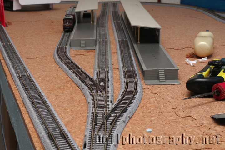 以前から放置状態だったレイアウト奥側に設置予定の留置スペースですが、結局伊豆稲取駅の片瀬白田駅方の分岐っぽくすることにしました。留置線なので今井浜海岸駅方は再現せず、行き止まりです。