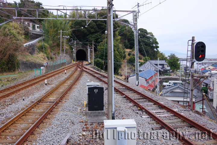 トンネルを抜けた線路は右分岐で上り本線へ分岐した後、左分岐で貨物線へ分岐、そして直線側が下り本線となっています。下り本線のなだらかなカーブは再現しませんが、この右分岐、左分岐と続く線路配置を再現したく思います。