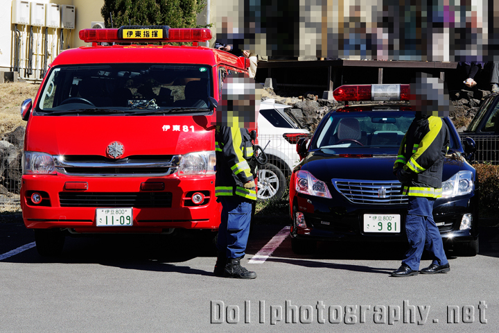 続いて指揮車(伊東81)の横にあるクラウンは署長用の公用車でしょうか。これもまた私的には珍しい車両です。東京消防でも署長用のクラウンなどはあるのですが、そういう車は赤色灯を載せていません。