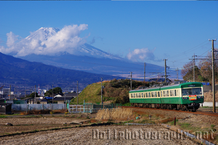 写真の富士山をバックに快走する3000系は第一編成で、写真の車両は修善寺寄りの3501です。