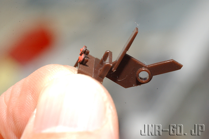 (サービスカット)今回は外す必要はありませんが、デッキはこんなパーツで、動力を止めているネジで共締めされています。デッキ部分の加工の際は参考にしてください。