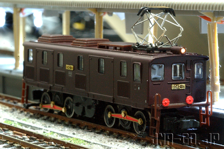 完成したED42-17。マイクロのこのタイプのカプラーには高さ的にはTNカプラーかSHINKYOカプラーが良いのですが、TNは押さえつけるとカプラーが上を向いてしまうのでNG、SHINKYOは綺麗に入らないこともあり、高さに目をつむりKATOカプラーを採用しました。