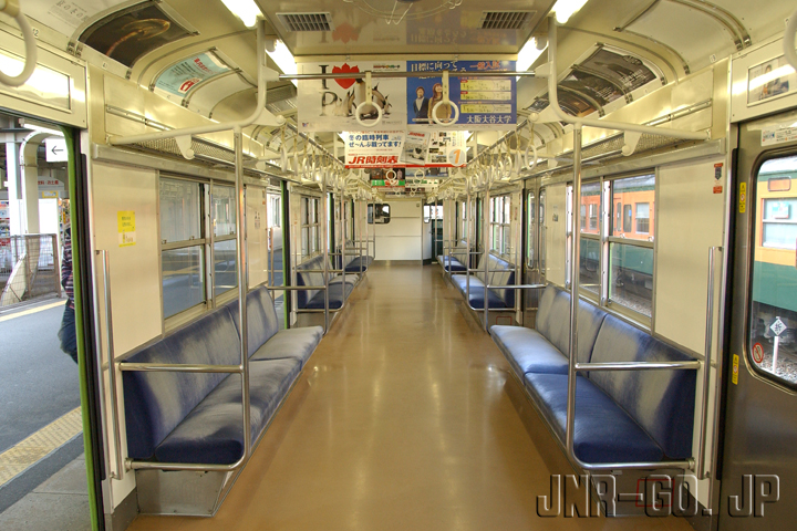 戸袋窓が埋められ室内は化粧板仕上げになっていますが、基本的な所で国鉄時代の雰囲気は残っています。阪和線のところで正面窓の縦サッシの有無という違いがありましたが、延命策の体質改善工事は時期により改造内容が異なり、微妙に仕様が変わっていました。