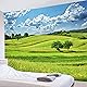 LB 風景写真タペストリー 浮かんでいる白雲と緑の野原(Amazon)